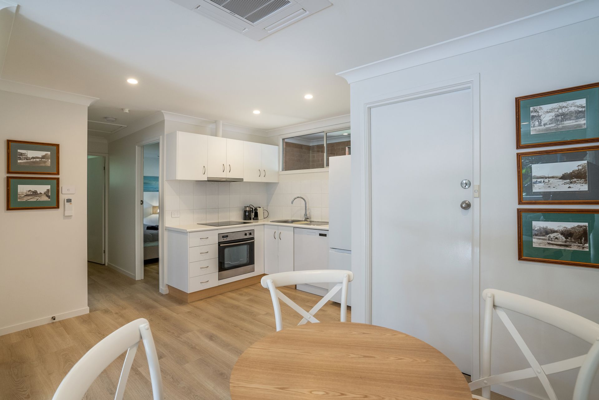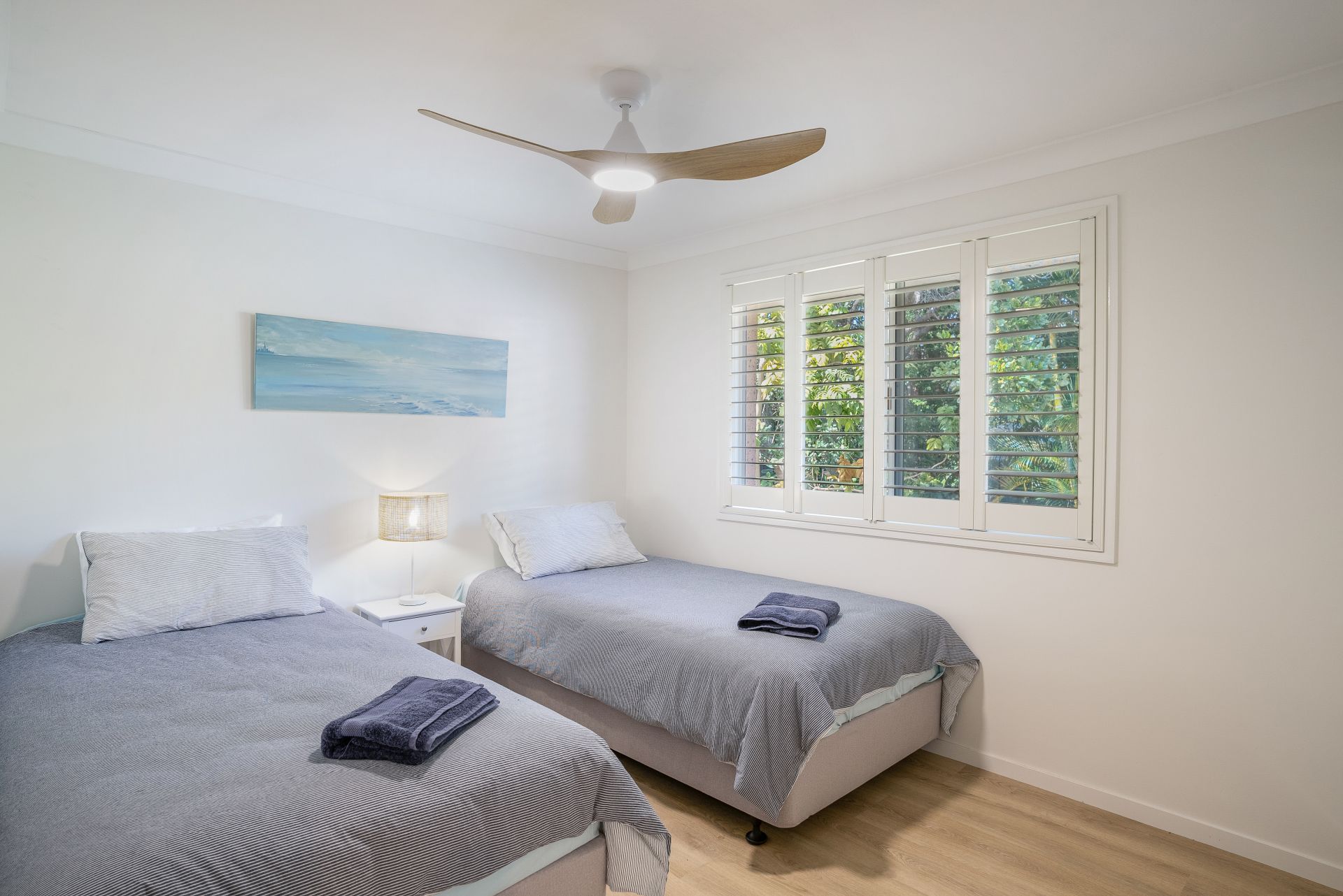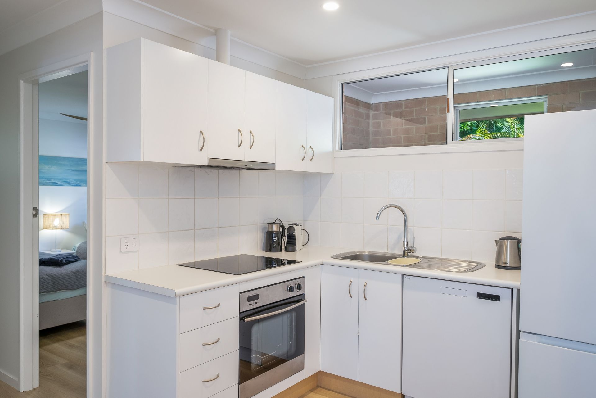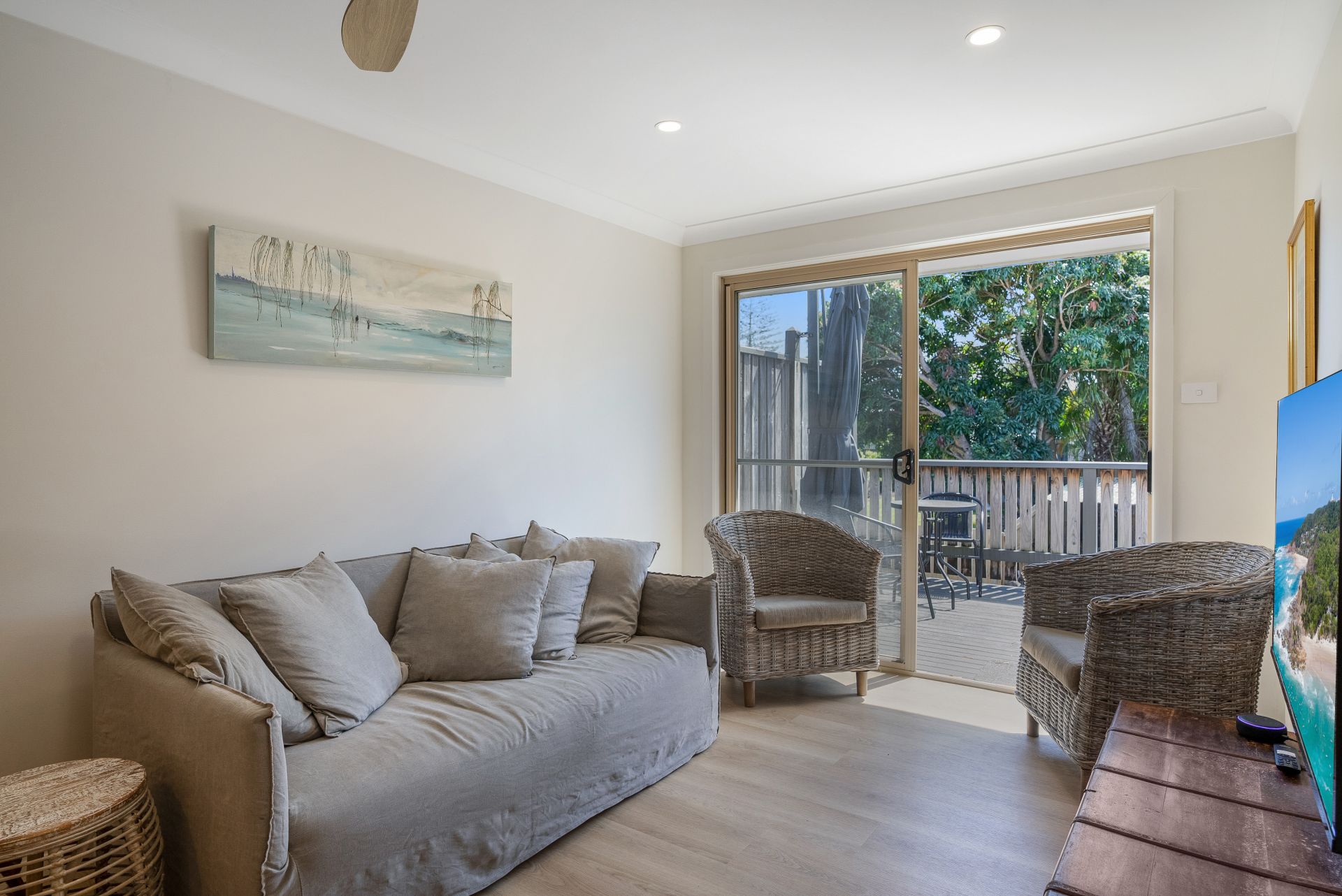 Newly renovated with a neutral colour palette throughout, this unit offers a fresh coastal style. Upon entry you are presented with the light and bright open plan kitchen, living and dining area, which opens to the spacious deck area through the glass siding doors. The kitchen is fitted with ample storage space, stainless steel appliances and a dishwasher. Throughout the entire unit is a fresh white paint colour, along with timber-look flooring. The lounge and dining area are styled with coastal inspired furniture, giving a relaxed and laid-back feel. The large timber deck is thoughtfully positioned to be Northeast facing, capturing sunlight all day long, with a shade umbrella included as well. As an added bonus, there is ducted reverse cycle air-conditioning!