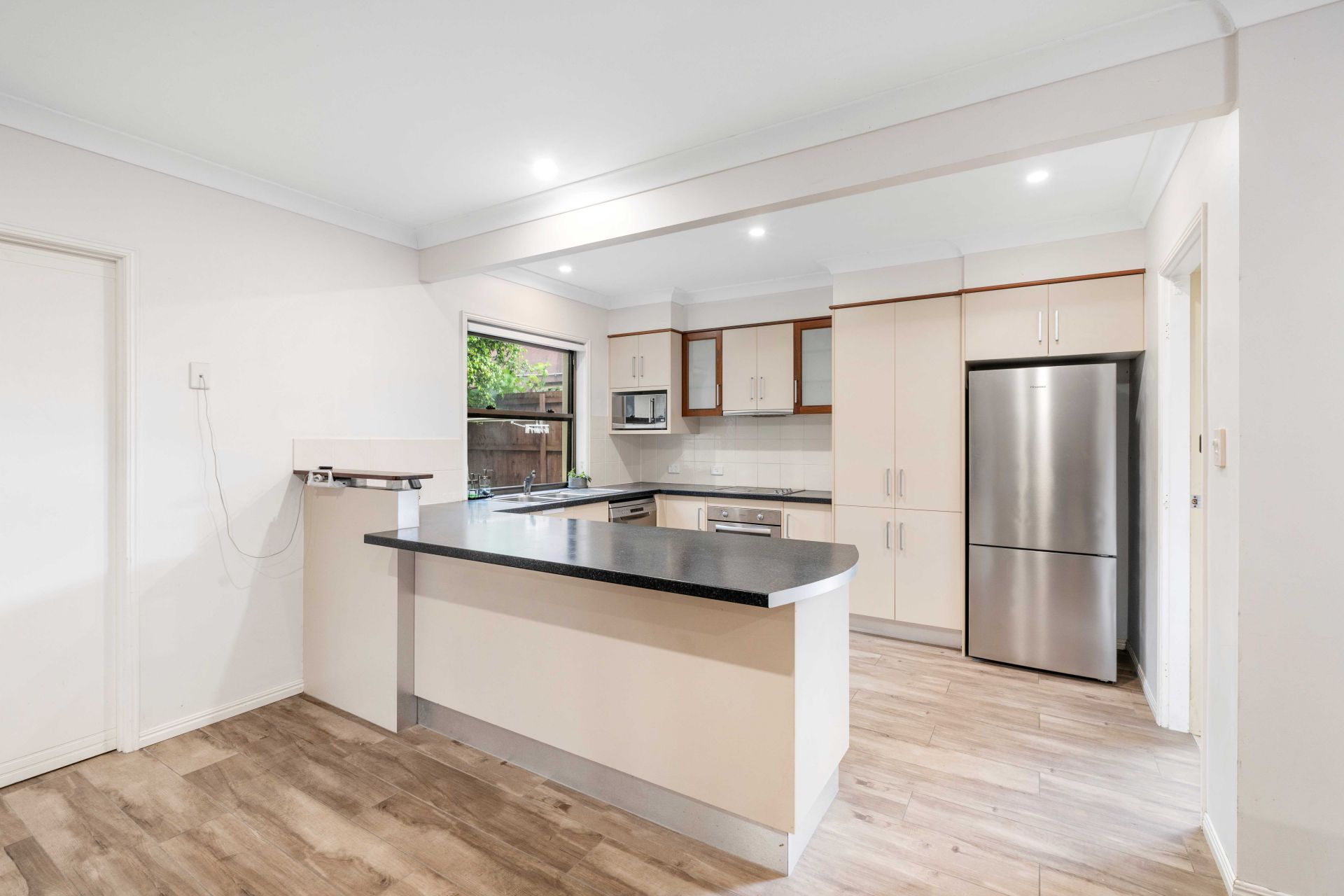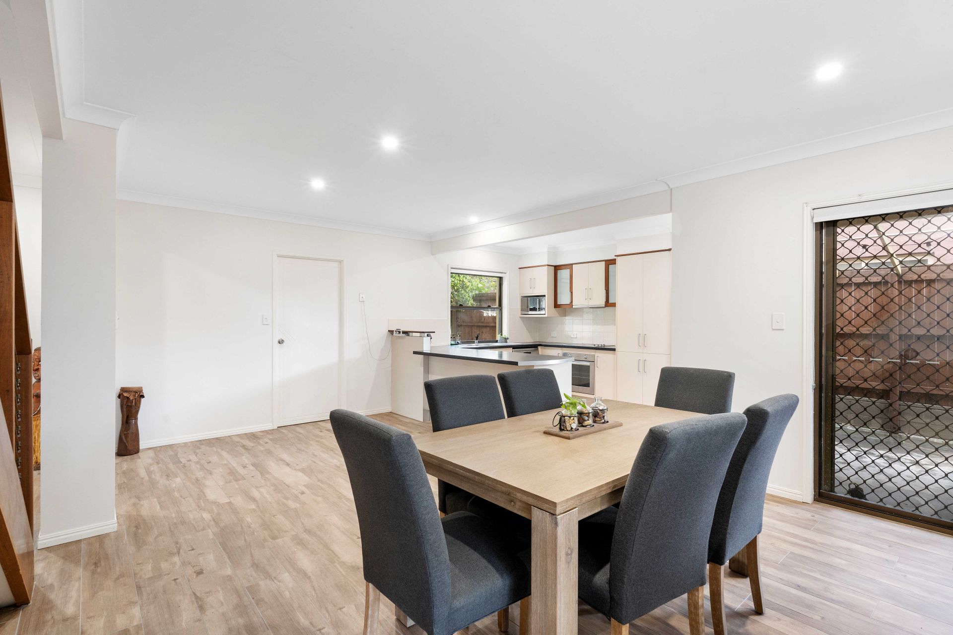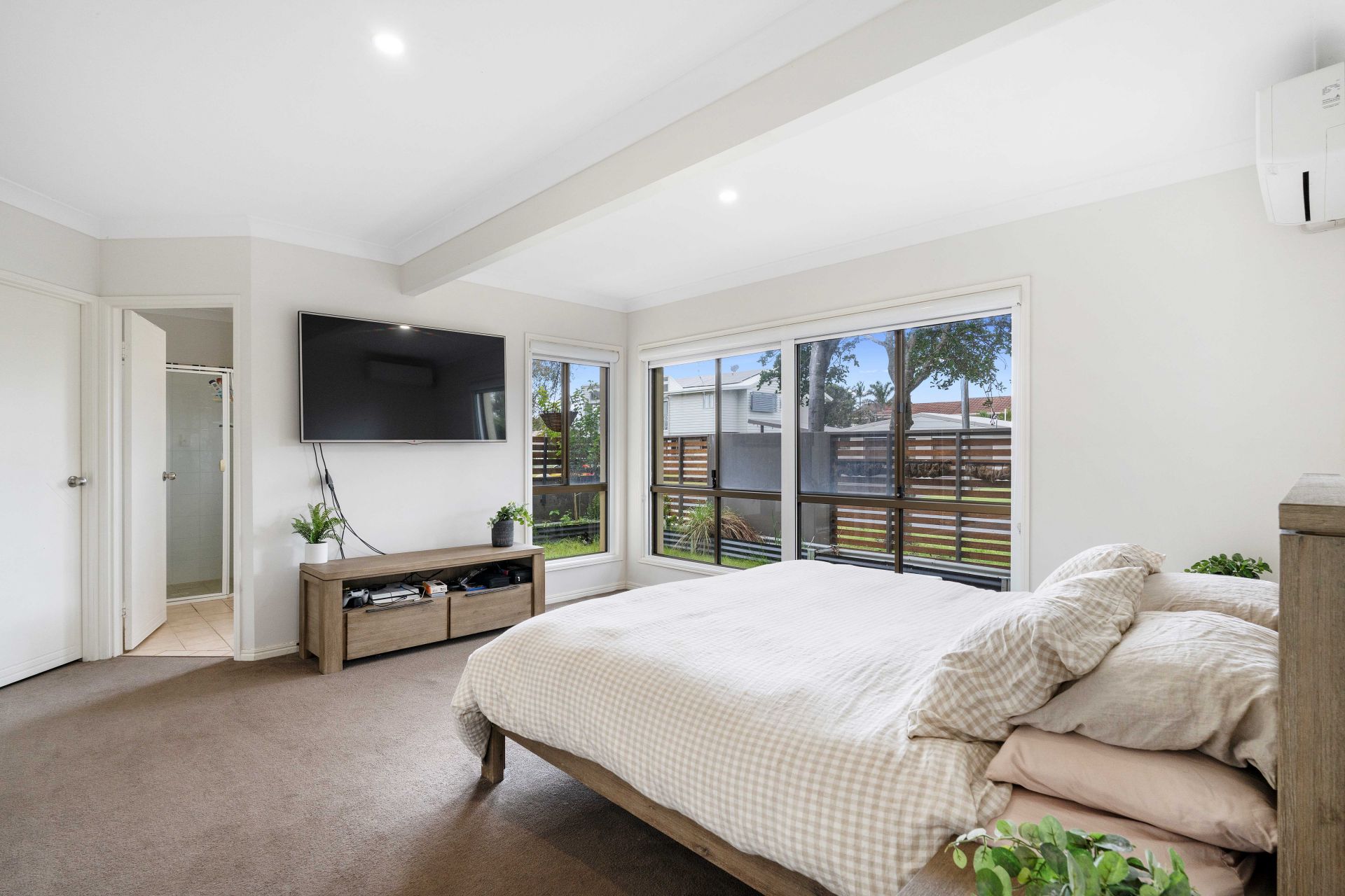 Upon arrival you are presented with the grassed front yard, double lock up garage, access through the side gate, and additional driveway parking. Spit across two levels, entering the ground floor of the home to the right-hand side is the spacious master suite featuring large windows to let in lots of natural light and air-conditioning. Connecting off the master bedroom is the walk-in robe, ensuite and additional storage from under the stairs. Continuing from the entrance of the home you pass the garage access and are greeted with the light and bright open plan living and dining area, which conveniently flows out to the undercover outdoor entertaining area. The kitchen is fitted with ample storage, stainless steel appliances and a window looking out to the garden letting in natural light.