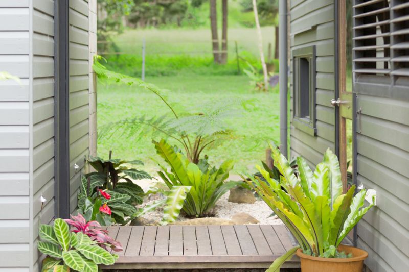 DAIRY - 1 Bed, 1 bathroom & large machinery farm shed. Delightful design - Galley style kitchen, aspect picture windows and sunny outdoor patio. Fully fenced park like setting garden with native hoop pines.