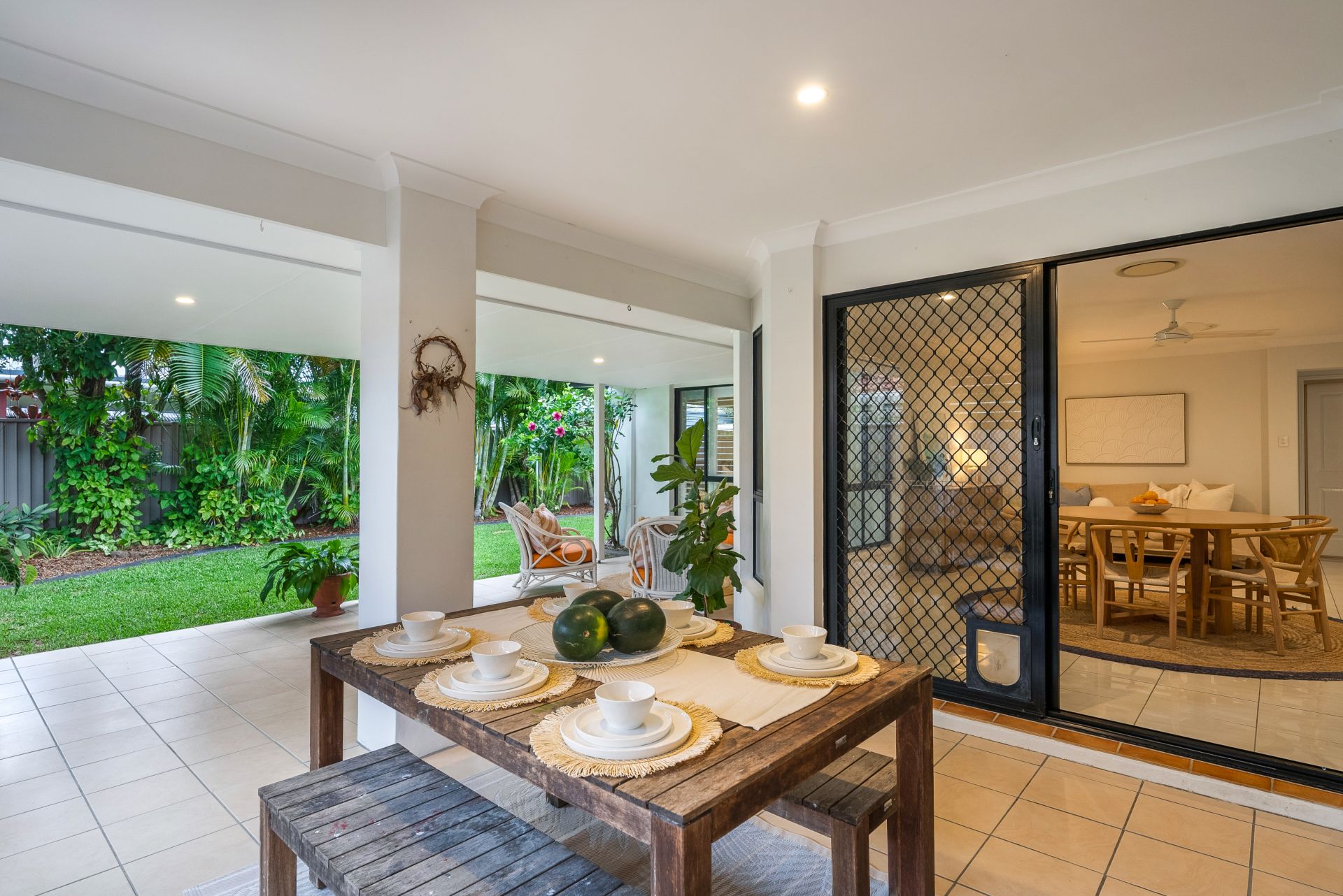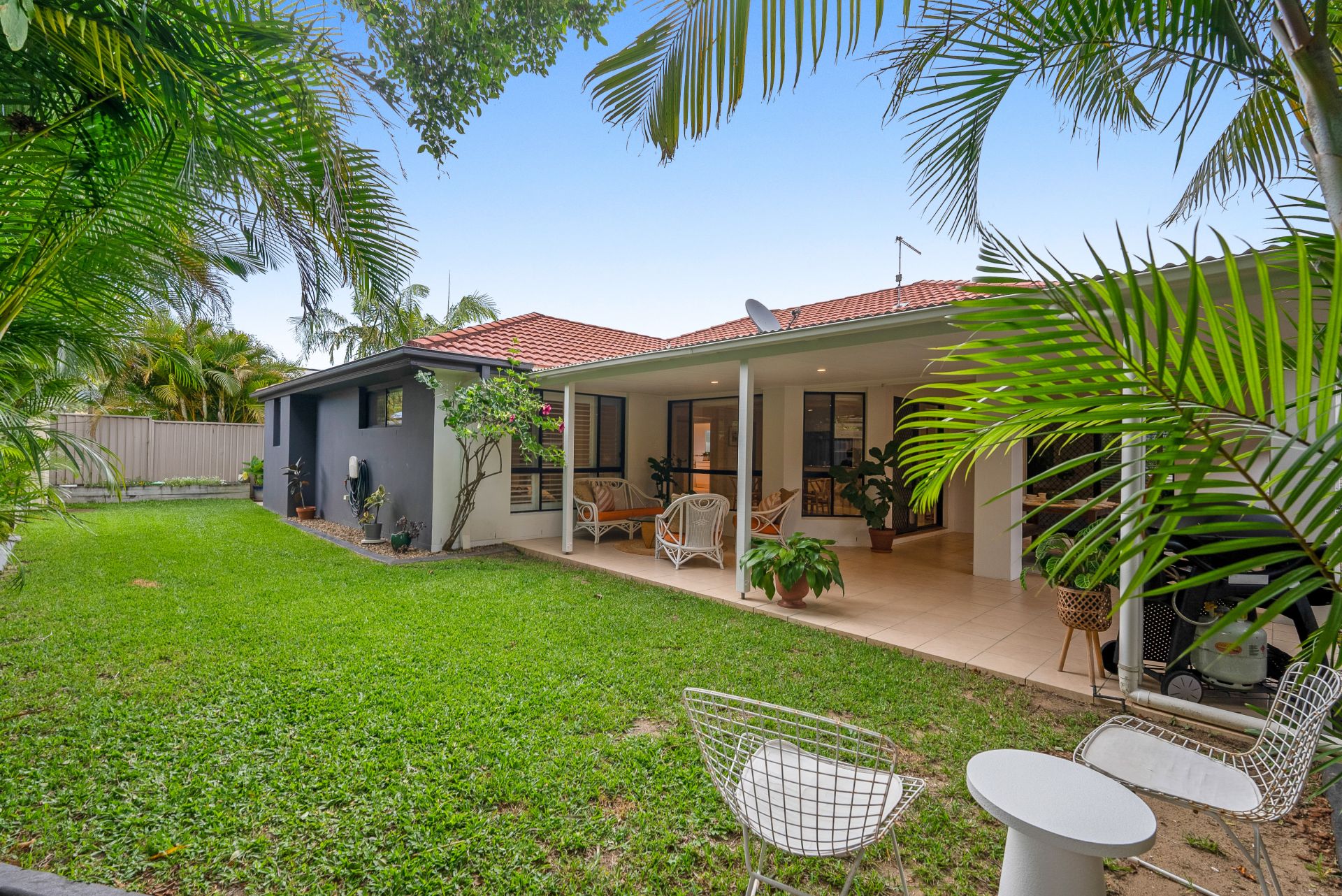 This delightful home offers a practical and versatile layout and is surrounded by lush and mature tropical gardens. Set over one level for added convenience, you are greeted upon arrival by beautiful established palms, a double lock-up garage and additional driveway parking.