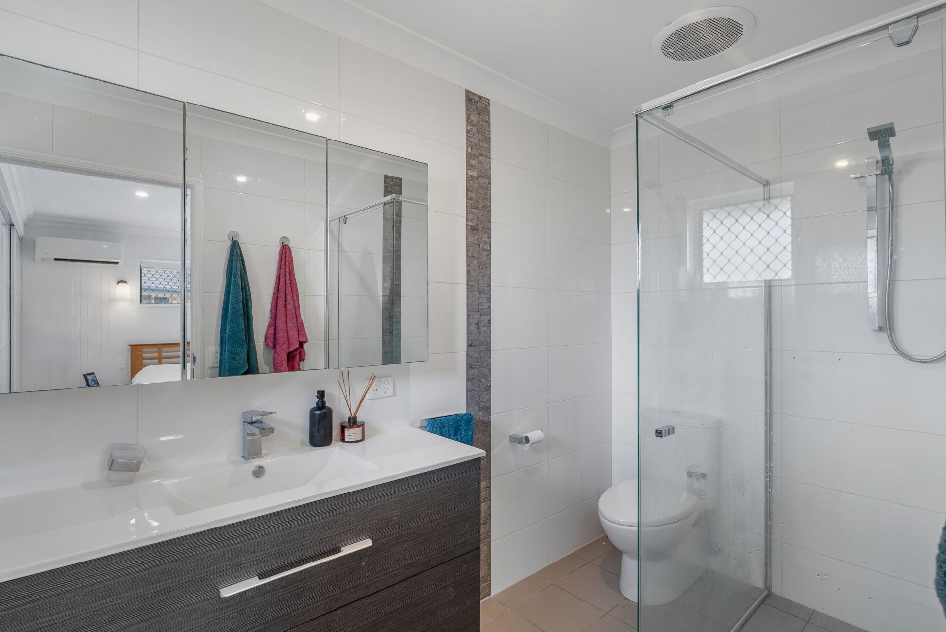The home features four generous, wool-carpeted bedrooms with built-in wardrobes and ceiling fans, including a front room that is perfect as a home office. The master suite is a true retreat with air conditioning, a spacious wardrobe, direct access to the outdoor area, and a beautifully renovated ensuite. The family bathroom is well appointed with a bathtub and a separate toilet, while the laundry and additional storage add to the home's practicality.