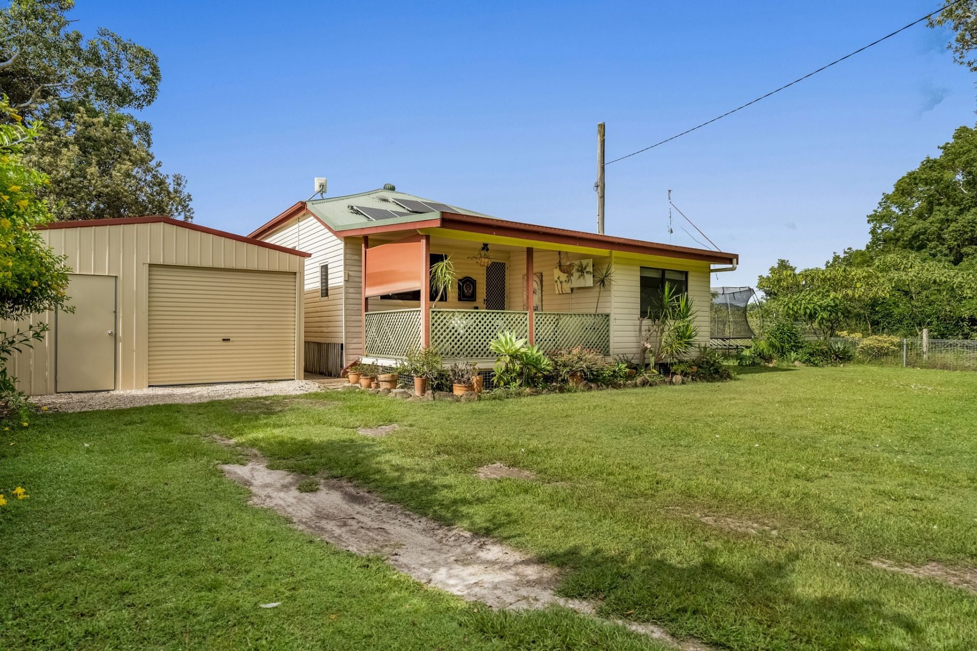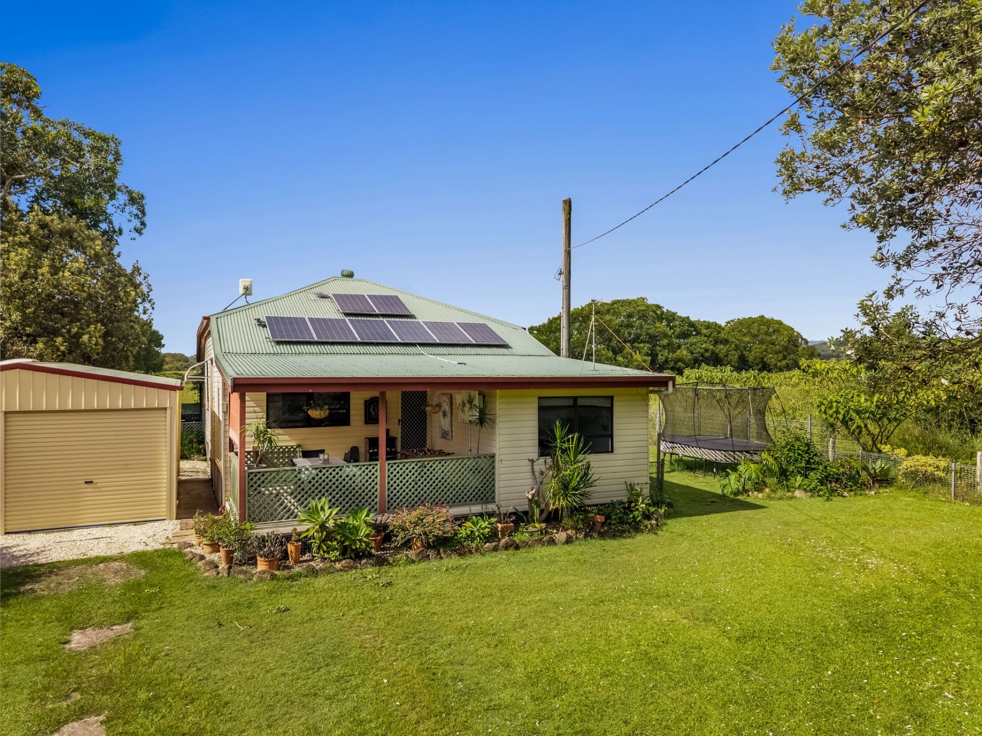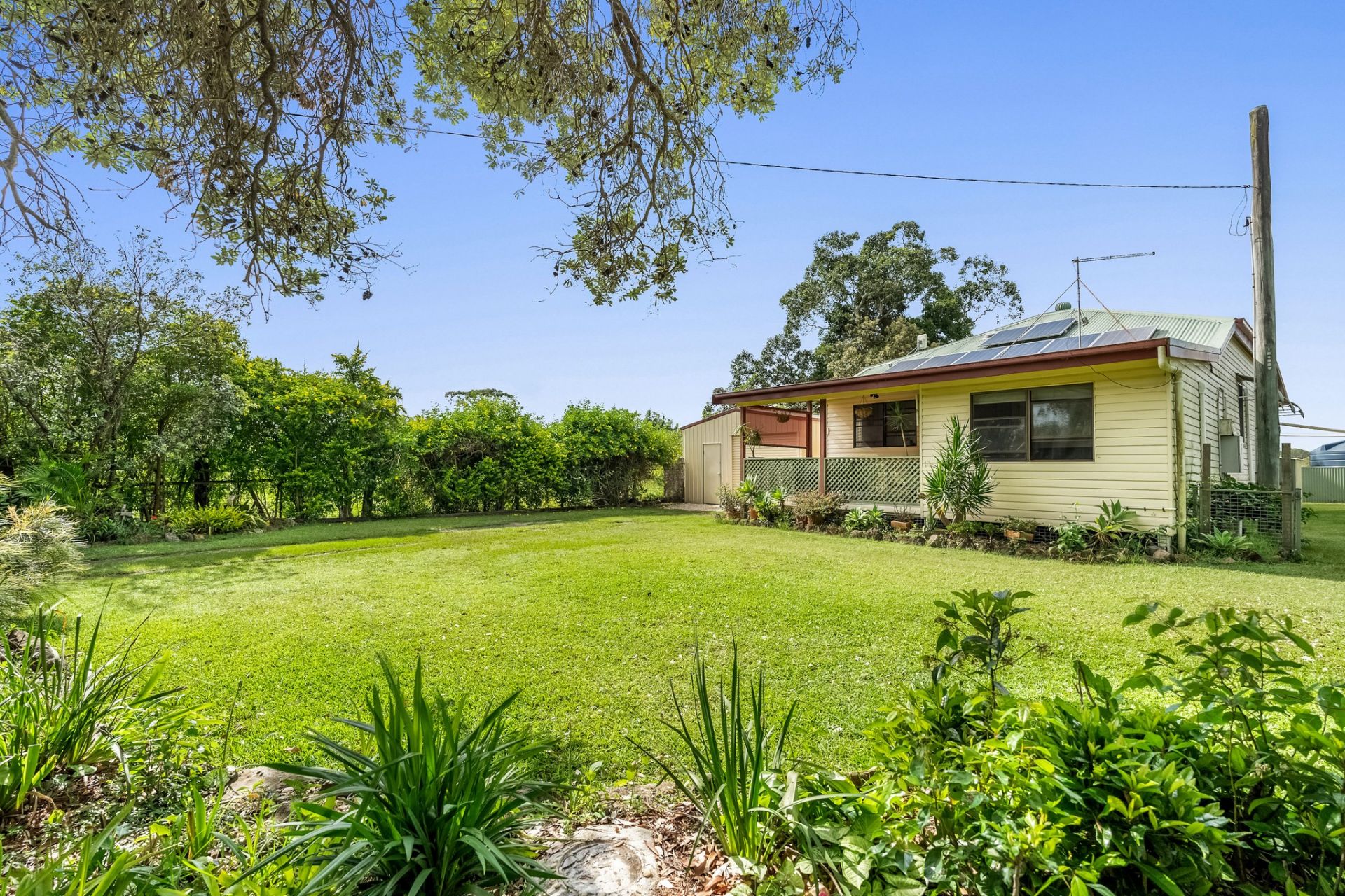 Offering a rare blend of rural tranquillity and coastal proximity, this charming Wooyung property invites you to embrace a slower, more connected way of living. Surrounded by open paddocks, mature trees and fresh coastal air, mornings begin on the covered porch or deck, while afternoons drift easily into relaxed outdoor living. With generous lawns, leafy outlooks and complete privacy, this is a home that encourages time outside, sustainability, and simple pleasures - all just moments from the beach and nearby villages.